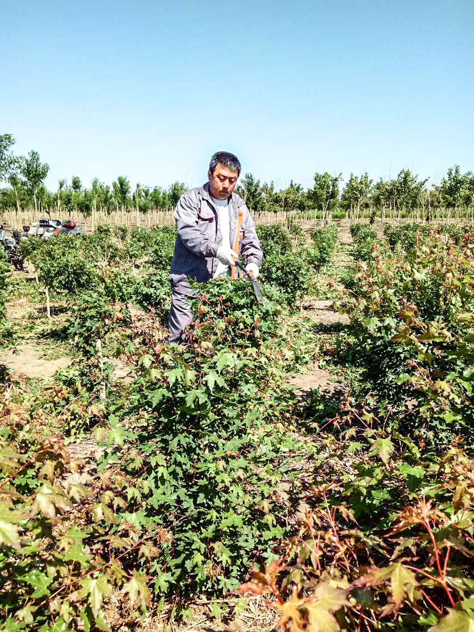2015年,吳廣寧又被調(diào)到錦州的金剛山苗圃任主任。離開了他所熟悉的平原苗圃,面對(duì)完全陌生的地質(zhì)條件和工作環(huán)境,吳廣寧又開始了新的求索。憑著一種不服輸?shù)木髲?qiáng),憑著一種對(duì)苗木事業(yè)的熱忱和執(zhí)著,經(jīng)過(guò)一年的努力學(xué)習(xí)和探索,吳廣寧又掌握了山地苗圃的種植和養(yǎng)護(hù)技能,還豐富了自己的管理經(jīng)驗(yàn)。正當(dāng)吳廣寧躊躇滿志,計(jì)劃著來(lái)年的工作時(shí),公司把一個(gè)更大的任務(wù)交給了他。2016年初,吳廣寧接手了剛剛組建的下洼子苗圃。對(duì)于吳廣寧來(lái)說(shuō),這不僅是公司對(duì)他的考驗(yàn),更是對(duì)他能力的挑戰(zhàn)!這一次,不是已經(jīng)建成的苗圃,而是新組建的苗圃。2400畝地、數(shù)十萬(wàn)株苗木,面對(duì)千頭萬(wàn)緒的籌建工作,不僅時(shí)間緊、任務(wù)重,更有吳廣寧想像不出來(lái)的困難,然而他沒有退縮,也沒有畏懼,而是憑著吃苦耐勞的精神和頑強(qiáng)的毅力,以身作則,事事親力親為,帶著苗圃全體員工開始了綠色大會(huì)戰(zhàn)……